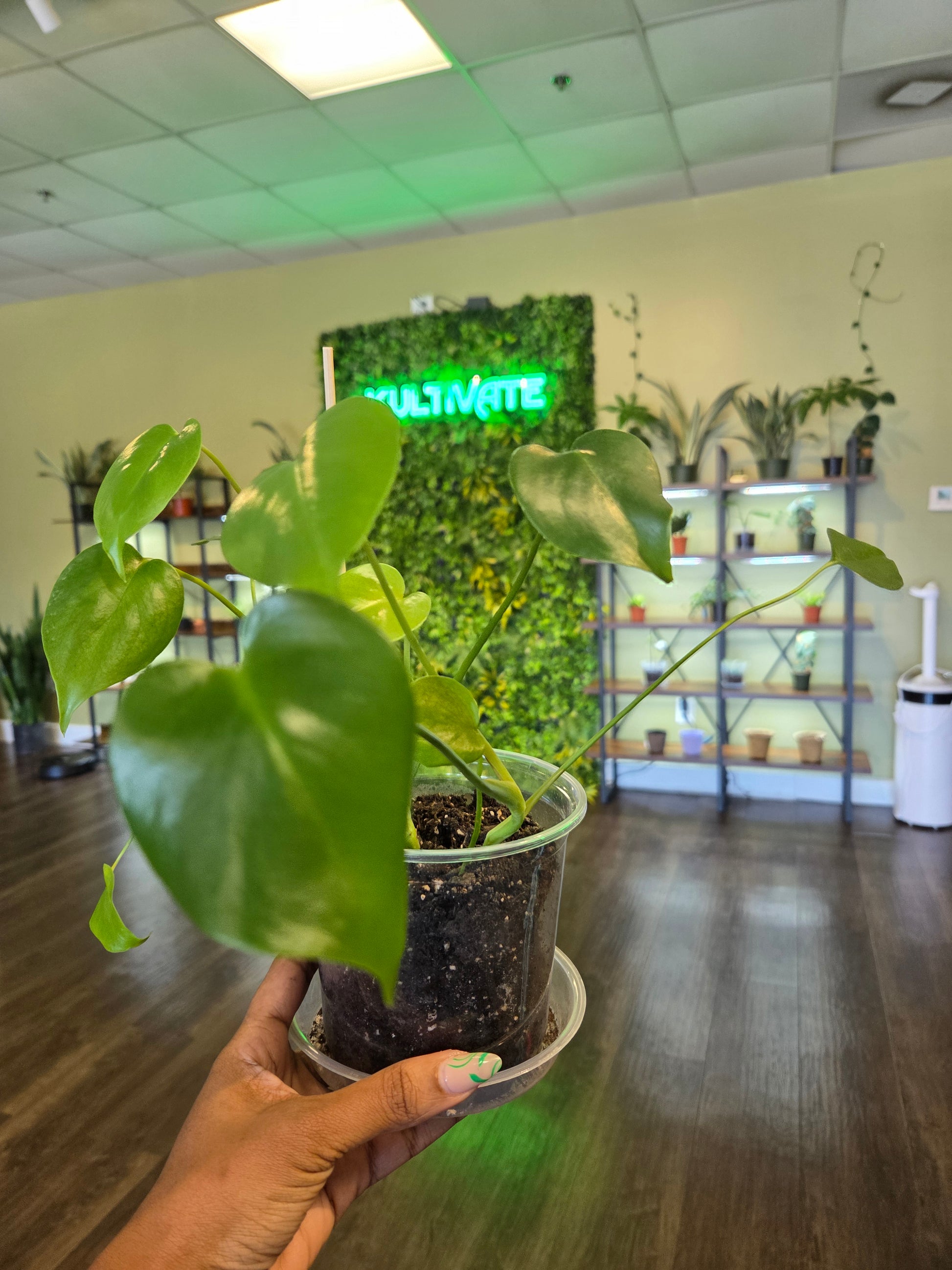 A fast-growing tropical plant with large, fenestrated leaves. Thrives in bright, indirect light and likes moderate humidity. Water when the top 1–2 inches of soil are dry. Use well-draining soil and provide support as it climbs. Toxic to pets if ingested.